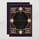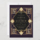 Modern stylish dark wedding card Purple with gold dust on with a gold ink pour effect (the gold is a digital effect, not real foil!) and modern calligraphy. Classy and elegant, simple and modern invitation.