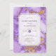 Contemporary purple & gold marble baby shower invitation with a matching back for an extra special touch.