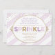 This stylish girl baby sprinkle invitation features glittery text and confetti with a modern stripe background pattern in purple and gold. The backside design is a solid purple colour that matches the front. Your guests will love this unique design.