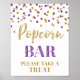 Popcorn bar sign for baby shower, bridal shower, birthday party or wedding in dark purple and gold confetti pattern. Please note glitter effect is photographic effect only.