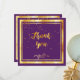 A purple background colour and a faux gold frame. With a golden confetti rain. On front a hand lettered style script and the text: Thank You! and a floral faux gold decor.