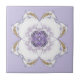A fractal art design in purple and gold is centred on this tile. The design has a floral look. The background is lavender. Matching bathroom accessories are available.