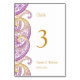Indian wedding table numbers with purple and gold paisley designs. Great for traditional weddings and other special events.