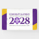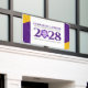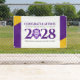 Colleges, universities, high schools, and institutes of higher learning can add sophistication to graduation ceremonies with this modern, contemporary banner, which features elegant lettering set on purple, gold, and white backgrounds. Customize with congratulatory message, graduating year, name of school/college/university, academic logo and/or slogan. Colours and font types can be modified as desired.