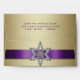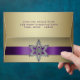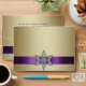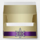 Purple Gold Christmas A7 Envelope with printed satin ribbon and printed diamond jewel in the shape of a snowflake. Printed on white paper, this photo of a metallic gold background and 3D effect of a snowflake jewel on a purple satin ribbon allow for the look of shiny gold envelope without the glossy texture so that it is easy to hand write your guests' addresses on the front. Designed to fit the Purple, Gold Merry Christmas Card in our store. Design by Elke Clarke for Monogram Gallery. Need help please contact luxuryweddinginvitations@gmail.com