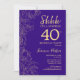 Purple Gold Surprise 40th Birthday Invitation. Minimalist modern feminine design features botanical accents and typography script font. Simple floral invite card perfect for a stylish female surprise bday celebration.