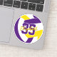 This team colours volleyball sticker features the image of a purple, gold and white volleyball, upon which you can personalize the athlete's jersey number and name - by katz_d_zynes