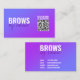 This editable business card template is perfect for any brows artist that wants to showcase their style and professionalism. It has a purple gradient background that creates a beautiful and eye-catching look, a calligraphic text that suits any niche or industry, and a QR code that connects your contacts to your social media or blog.