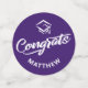 Add some extra style to your favourite grad’s celebration party with this customizable table confetti! On one side, bold, graphic, white handwritten script calligraphy, sans serif typography and a grad cap icon overlay a deep purple background. 3 photos of your choice are on the back. Personalize the custom text with your graduate’s name, class year and school/special message. Matching invites, thank you cards, hand fans, banners, yard signs and other graduation goodies are also available in this trendy and stylish collection. Guaranteed to add extra fun at their special celebration!