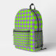 Purple Green Chequered Diamond Pattern Printed Backpack