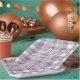 If you are wondering what colour combinations to pick for your Christmas decor and gift wrap supplies this year, I've created collections of coordinating patterns to make life just a bit easier. This paper plate features a modern, cozy-looking plaid design, shown here in a striking purple and green colour palette. Add a message and name using the provided template. Search ID1009 to see other products and patterns in this colour scheme.