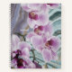 A modern floral notebook featuring purple orchid blossoms layered over flowing watercolor textures and a muted teal green and purple geode-inspired background. This colorful, artsy design feels creative, uplifting, and feminine — perfect for journaling, note-taking, planning, or school.