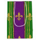 PURPLE GREEN GOLD GLITTER LOOK MARDI GRAS MEDIUM GIFT BAG