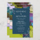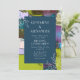 Purple Green Modern Painted Abstract Trendy Floral Wedding Celebration Invitations features your wedding invitation information on a purple, teal, grey, green and white background accented with white botanical elements. Personalize by editing the text in the text boxes provided. Designed for you by ©Evco Studio www.zazzle.com/store/evcostudio