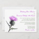 This stylish and modern pink, purple, and green Thistle wedding invitation has a stylized Canada Thistle on a white background. It would be perfect for a Scottish or Celtic wedding. Add your own clan tartan to the background. There is a text box on the back to add any extra text you may want, or you can remove the text and have the the back a solid colour instead. It would work nicely for a casual spring or summer wedding or anniversary. The text and paper is all customizable. ***PLEASE NOTE that if you change the font or size of the font, it may alter how your invitation prints. It will print the way you see it on your monitor, so if you have alignment issues, or sizing problems, please contact me for help. I will not see your invitation once you order it, and Zazzle will NOT edit anything (typos, alignment, etc.). If you require assistance or would like any other matching items, please email your request to niteowlstudio@gmail.com. Matching items are shown below.