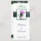 This stylish and modern purple, green, pink, and white MacKenzie Dress tartan and thistle wedding menu card has a stylized Canada Thistle on a white background framed in green, atop a tartan band that matches the wedding invitation shown below. The tartan is specifically the MacKenzie Dress tartan, but that can be changed out to your tartan by email request. It would be perfect for a Scottish or Celtic wedding reception. It would work nicely for a casual spring or summer wedding or anniversary too. The text is customizable. It is shown here on a rack card which has a high gloss finish on the front side and a matte finish on the back. If you would prefer the menu on linen paper to match your invitations, just email your request to the address below. ***PLEASE NOTE that if you change the font or size of the font, it may alter how your card prints. It will print the way you see it on your monitor, so if you have alignment issues, or sizing problems, please contact me for help. I will not see your menu once you order it, and Zazzle will NOT edit anything (typos, alignment, etc.). If you require assistance or would like any other matching items, please email your request to niteowlstudio@gmail.com.