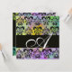 PURPLE GREEN YELLOW BLACK DAMASK MONOGRAM , white Invitation