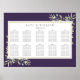 This elegant seating chart features delicate watercolor greenery leaves on a purple background. Designed by Thisisnotme©