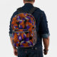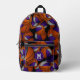 This cool basketball backpack features a random pattern of varied size basketballs turned every which way on a black background - each of the basketballs in the pattern has two recolored panels--one purple and one grey - customize with the athlete's monogram - by katz_d_zynes