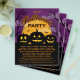 Halloween Party Event Flyer Features Black Pumpkins With Carved Faces, Moon, Clouds, Trees & Bats. Customize To Your Liking.