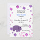 A big purple hippo with a sweet expression on his face, ready for a birthday party accents this fun invitation. A border of cubes and fun designs adds a fun appeal. Customize with all of your information as desired.