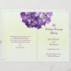 Purple hydrangea flower wedding program template to customize with your own text and wording, to be folded in half after purchase. A large floral image at the top will appear half on the front page and half on the back. Text is matching purple on a lightly lined background for a more rustic look. All four sides have templates to hold all your ceremony information, list of special people and a thank you message on the last page. Please check text and spelling carefully as this program WILL NOT BE PROOFREAD before shipping. **Use this matte finish, white paper only as the glossy will not fold well.