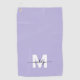 Create Your Own Personalized Custom Light Purple Modern Script Name Monogram Golf Towel. This chic, feminine golf towel features a stylish monogram design with a flat white initial on a soft light purple background with a lavender or lilac hue and a classic black script name for a personalized touch. Printed on one side, this towel adds a unique and elegant flair to any golf bag. It makes a fun and sophisticated gift, perfect for birthdays, holidays, Mother’s Day, or any special occasion when you want to celebrate someone—or treat yourself! Ideal for the golf lover who enjoys a blend of style and personalization while staying practical on the course.