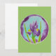 Iris lovers will enjoy this purple iris flower batik art. It is a batik of a purple iris with two green leaves on a colourful background of purple and blue.