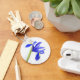Keychain with a photograph of a purple and yellow iris flower against a white background.
