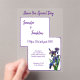 This stylish purple iris watercolor wedding invitation can be personalized with your own heading, your names, the date & time of the ceremony, the location and some additional invitation. Because the acrylic invitation does not have more room it should be coupled with an RSVP card or enclosure card with additional information for response, wedding registry information and additional information such as travel and accommodation,