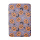 This design features a vibrant Halloween pattern with a playful and cute design. The pattern showcases bright orange jack-o'-lanterns with various cheerful and friendly expressions. These pumpkins are surrounded by a purple background filled with white spiderwebs, black bats, crescent moons, stars, candy corn, and small spiders. The overall theme is fun and festive, making it perfect for a lighthearted Halloween decoration or themed design. The colour palette is a mix of traditional Halloween colours—orange, black, and purple—with added touches of white and yellow for contrast.