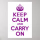 Purple and white "Keep Calm and Carry On" modern version of classic poster.
