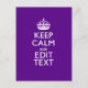 Your personalized Keep Calm saying on a fine custom deep purple colour style decor. A personalized Keep Calm style saying on a one of a kind gift. Humourous or whimsical try on your creative words on two editable lines of text. Remember to use CAPITAL letters for best results.