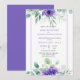 Vivid watercolor purple anemones and matching greenery border top and bottom wedding invitations. *** NOTE *** If you need help with this invitation or for custom requests you need my help with, do not place this merchandise in your cart. Instead, email me your request at shutterbug600@yahoo.com. All shipping and printing is handled by Zazzle and questions concerning your order should be directed to Zazzle support: https://www.zazzle.com/about/ask. I do not have access to your account and can't make changes once you've placed your order. I do not have access to your account and can't make changes once you've placed your order. Also, CHAT is not live, but I answer within 24 hours.