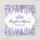 Square Purple Quinceañera RSVP Enclosure Card: This chic and modern enclosure card makes it easy for guests to RSVP digitally. The front features a customizable QR code for convenient access to your event website or RSVP form, along with a spot to display a website URL. Lovely purple watercolor lilac and lavender flowers are beautifully arranged along the top, with shades ranging from deep violet to soft lavender, complemented by a girl in a stunning purple sparkle gown on the left for a personal, elegant touch.