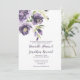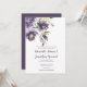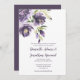 Watercolor peonies in purple, lavender with lots of lush greenery accents wedding invitations. The back of the card is dark purple. The text boxes are easy to personalize with your own information. The text is a mix of modern and ornate calligraphy fonts.