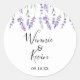 Purple, Lavender Wedding Sticker. Designed with purple hand painted lavender flowers with watercolor type stylizing. This is a country style design for spring, summer and outdoor weddings. Customize this design with your wedding date and bride and groom's names. The background colour is set to white, however you can choose a fill colour of your choice.