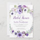 Watercolor floral wreath in purple, lavender, and white. Personalize with your own information.