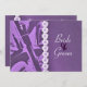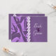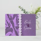 The front axle and wheel of a motorcycle in shades of purple make up the left edge on the front of this wedding invitation perfect for biker couples. The right edge has the appearance of purple leather. A single row of daisies separates the two halves. A row of the same flowers decorate the back of the invitation. All customizable text can easily be changed to suit your own needs.