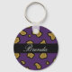 A modern design featuring a purple leopard print background with black, brown and tan spots.. A band of black accents name. Customize as desired.