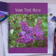 Type the text you want in the Personalized section, such as your name or the name of an event or organization. This notebook has a lilac image against a purple background, with a green spiral binding on the front and back. Choose the type of paper you want, including different types of lined patterns or blank. Use it as a guest book or a place to capture your ideas, doodles, or big plans.
