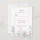 This wedding rsvp features a crisp white background framed by a gold geometric border that adds a modern, elegant touch. Soft pink peonies and lush green leaves accent the design, bringing in a romantic, garden-inspired feel. The typography is varied and graceful, combining serif and cursive styles in black, pink, and gold tones for a refined yet warm presentation. The overall layout is balanced and celebratory, perfect for a vineyard wedding with a blend of classic charm and contemporary flair.