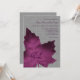 A large, subtly monogrammed purple, maple leaf, on an illustrated linen background, decorates this grey wedding invitation. It is shown on the matte paper; however, I recommend the weight and texture of the linen paper, to enhance the look.
