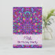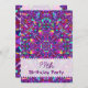 Birthday Party Invitations with a purple yellow, turquoise, blue and red fractal art mandala hippie pattern