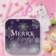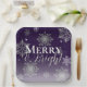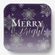 Purple Merry and Bright Snowflakes Christmas Paper Plate