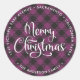 Create your own Merry Christmas return address labels featuring a calligraphy type font on purple buffalo plaid background. Easily personalize these purple chequered Merry Christmas labels with your family name and address.