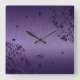 Purple Metallic Design Brushed Steel Look Square W Wall Clock