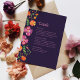 Make your wedding details shine with our "Purple Mexican Floral Fiesta Wedding Details Invitation" set against a bold purple backdrop. This invitation embodies the spirit of celebration with hand-painted watercolor flowers in vibrant shades of orange, red, and purple. Against the striking dark canvas, your wedding specifics elegantly stand out in sophisticated dark text, creating a captivating contrast. The design exudes a festive and stylish vibe, setting the tone for a vibrant and joyful celebration.