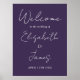 This purple minimalist elegant script wedding welcome sign can be personalized with your information in chic typography. Designed by Thisisnotme©