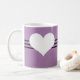 Sweet and charming Modern Heart Mug featuring a lavender background and a cute heart and striped border. This cute and girly mug is perfect for enjoying your favourite hot beverage! Customize with the text of your choosing. Click on "Customize" to find additional personalization options.